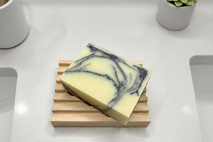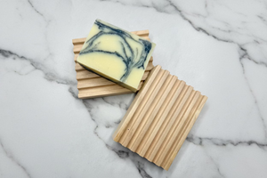 2.75" x 4" red alder Boardwalk style soap dish. It's the perfect pedestal for your Dirty Knees bar of soap. It'll keep your soap from sitting in water, which will extend the life of your bars.